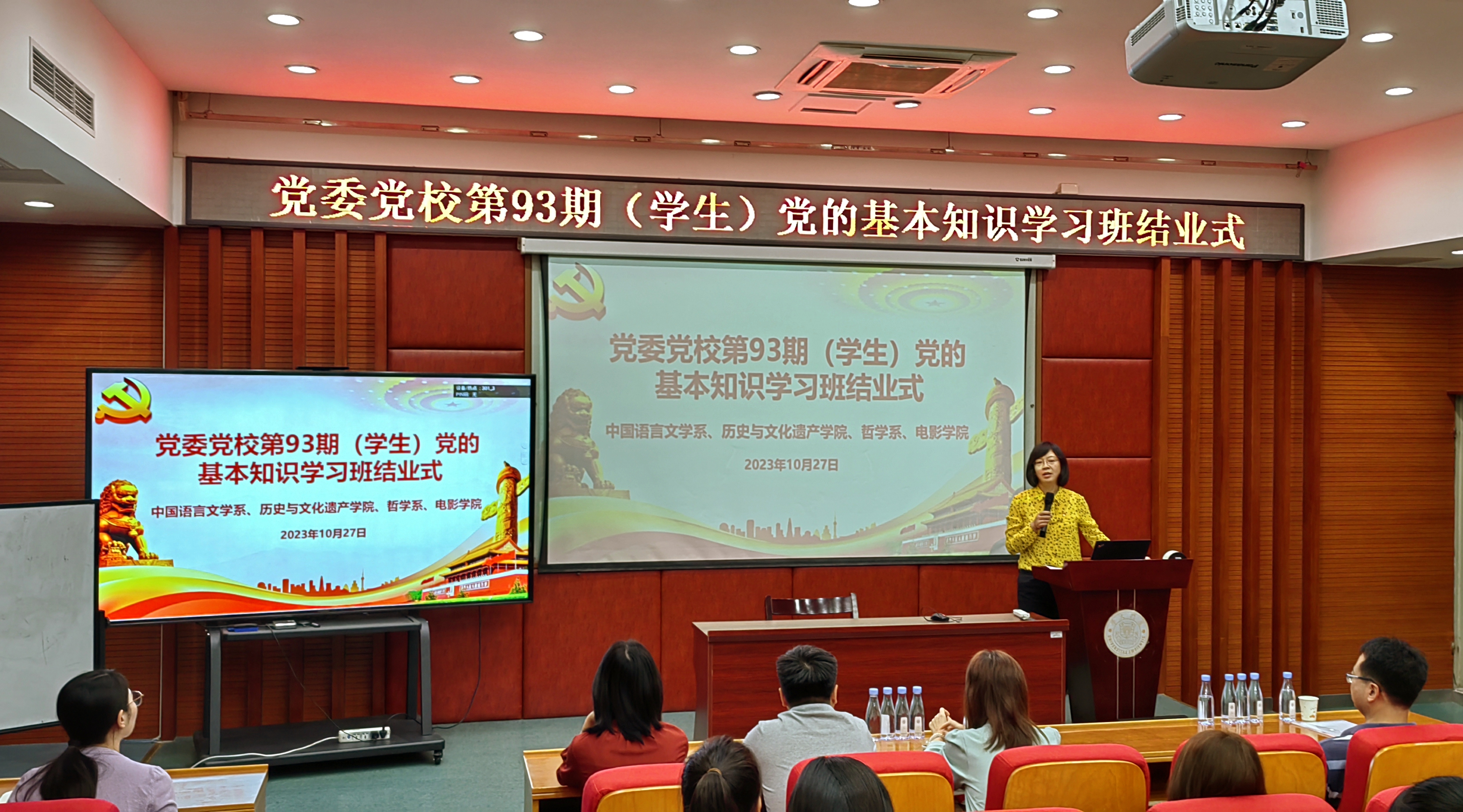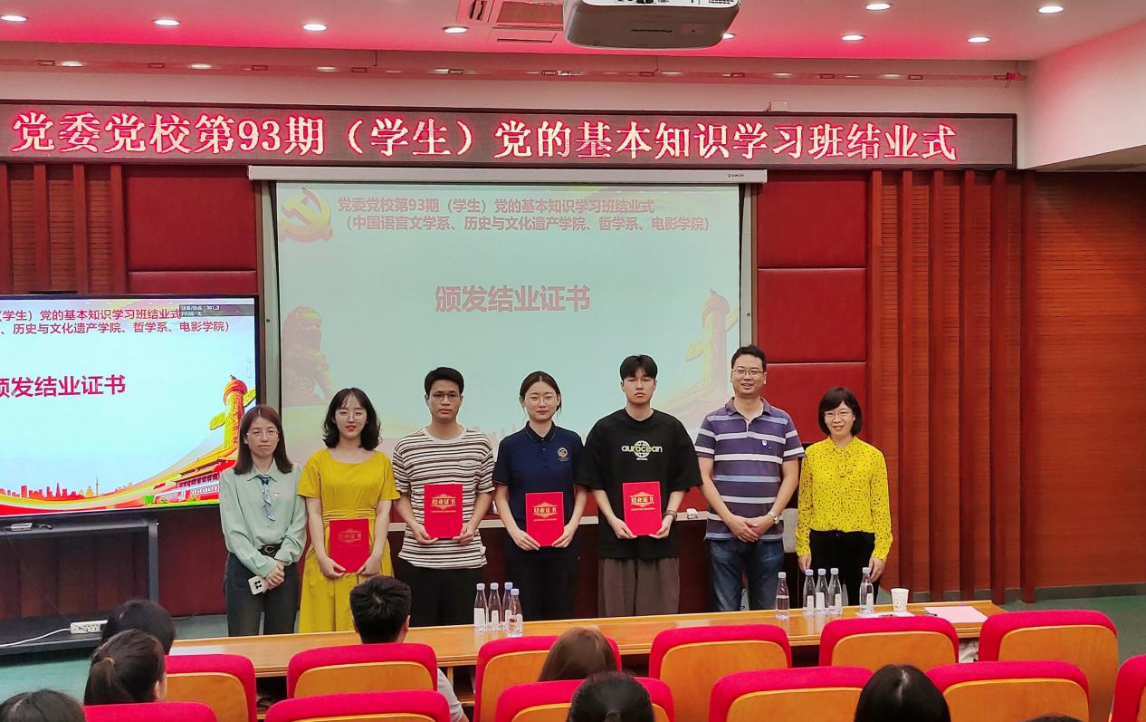 10月27日上午9点,学习班结业式在南光楼101报告厅举行,结业式由中国语言文学系党委副书记葛学凤主持,哲学系党委副书记王晓萌、历史与文化遗产学院党委副书记张晗、各单位党务秘书、带队老师和全体学员参加。