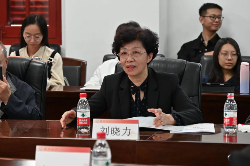 研讨会第一场报告由厦门大学哲学系系主任朱菁教授主持。中国人民大学哲学院刘晓力教授首先发言。她首先表示对厦门大学哲学系建系百年的热烈祝贺,并借此机会回顾了与哲学系的深厚情谊。刘晓力教授深入勾勒了哲学学科独特的三个先决条件,即跨学科、关注前沿与学术自由,指出哲学学科创新发展需要融汇广泛的知识体系,加强与其他学科的紧密联系,关注时事与前沿思想。同时,学术自由对哲学研究不可或缺,只有在开放自由的学术环境中,哲学才能真正发挥其思辨和创新的力量。最后,刘晓力教授充满热情地表达了对厦门大学哲学系未来的美好祝愿,期待其在百年建系的基础上更上一层楼。