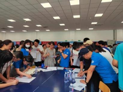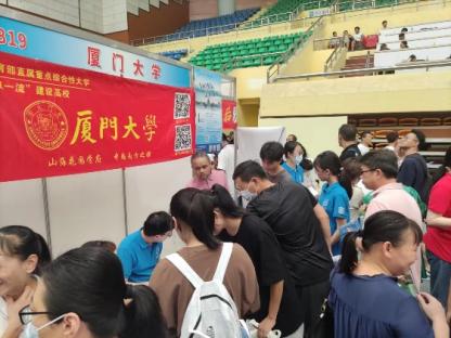 6月29日上午,杨机像、申祖胜、黄慧敏一行在漳州华阳体育馆参加了面向漳州全市中学的高考招生咨询会