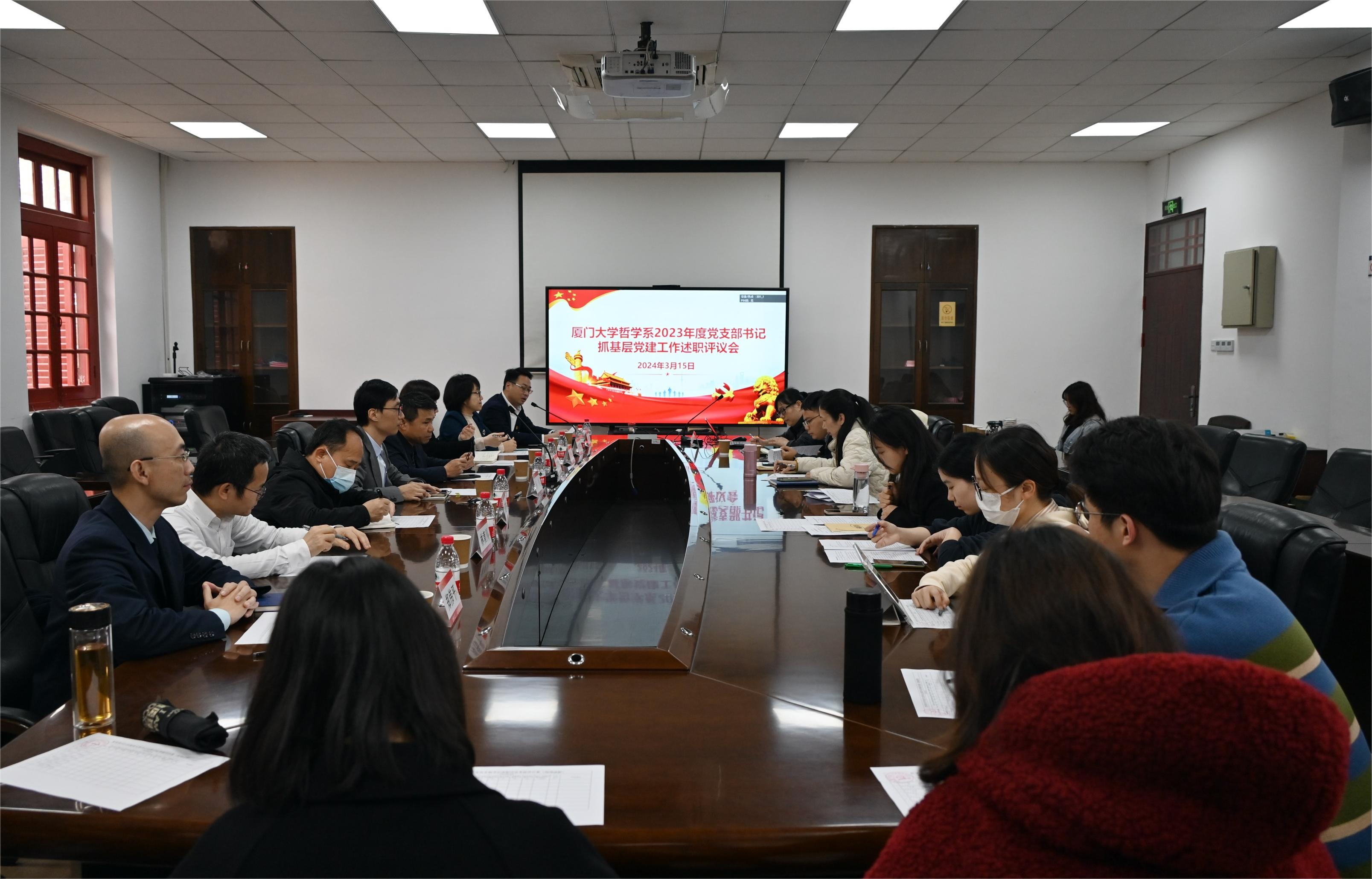 为了进一步提升基层党建工作质量,深入发挥党建引领作用,哲学系于3月15日下午召开2023年度党支部书记抓基层党建工作述职评议会。