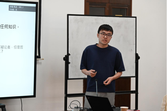 随后,王凯立老师分享了自己参加校赛的经验。他结合自己的实际经历,回答了如何挑让学生感兴趣的主题的问题。同时,教学比赛需要学术深度,但清晰地传达课堂内容才是最重要的,这对教师的板书设计和结构性思维提出了很高的要求。最后,王凯立老师强调,要以学生为本,了解学生的知识水平和思维习惯,并在此基础上设计课程。