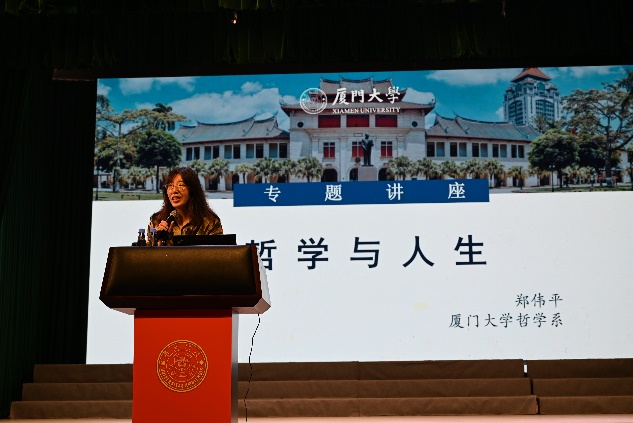 下午,来访师生齐聚建南大会堂,哲学系负责本科生教学工作的副系主任郑伟平教授进行了精彩的招生宣讲,并为师生们带来了一场主题为《哲学与人生》的讲座,郑老师深入浅出的讲解引起同学们热烈反响,现场气氛欢快融洽。最后附属中学高一年级段长卜春鹤老师代表附中全体师生向哲学系精心准备的各项活动表示感谢。