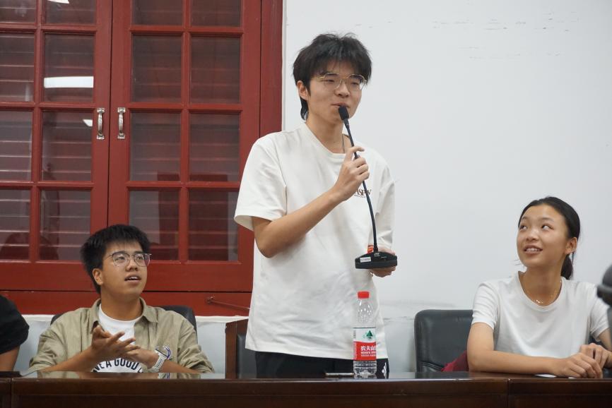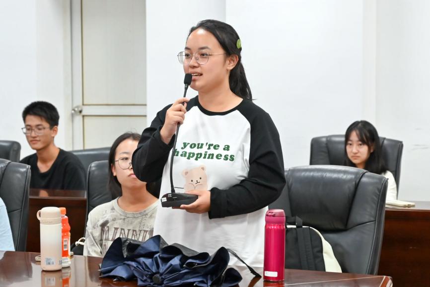 在新生自我介绍环节,同学们热情分享各自的家乡文化特色、兴趣爱好与大学生活规划,并表达了初入大学的喜悦心情和对未来生活的无限憧憬,会议氛围格外活泼热烈。