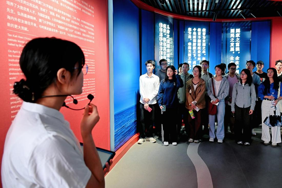 开班仪式结束后,学员们赴“陈嘉庚与厦门大学”纪念展馆开展实践学习。在讲解员动情的讲述之中,他们依次走过六个展厅,为陈嘉庚先生投资兴学、赤心报国的一生深深打动。通过参观学习,学员们更加深刻地领会到了嘉庚精神的深刻内涵,感受到了作为厦大学子的责任与担当。