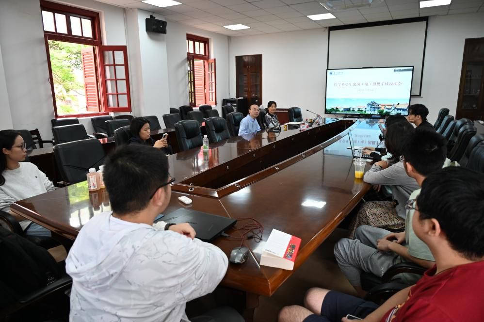 她首先系统讲解了厦门大学学生出国(境)校内申请审批系统的操作要点。她强调,申请需区分“因公”(如留学、科研合作)与“因私”(如探亲、旅游)类别,并详细说明研究生与本科生的差异:研究生需通过“研究生管理系统”提交申请,经导师、院系、研究生院三级审核;本科生则通过“学生事务管理系统”流转至学生处、教务处及国际处。所有申请须至少提前两个月启动,并附经导师确认的正式邀请函。在材料准备环节,李文娟特别提示安全防范责任书需学生和系办“双存档”。针对行程变更等特殊情形,会议明确需至少提前30日提交书面申请及支撑材料,经院系与学校两级审批后方可调整。