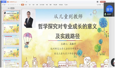 杭州师范大学教育学院的高振宇老师带来了上午的第二场讲座,本次讲座的主题为《从儿童到教师:哲学探究对专业成长的意义及实践路径》。高老师对“教师哲学的理论与实践”做了重点介绍,其课程逻辑清晰,讲演材料十分丰富,中英双语,深受同学们喜爱。