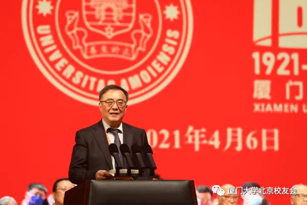 刚才听了习近平总书记的贺信,以及张荣校长的报告,我们为母校百年来所取得的成就和对国家所做出的贡献感到骄傲与自豪!对母校近年来在人才培养、科学研究与社会服务等方面取得的优异成绩表示衷心的祝贺!此时此刻,我们倍加怀念校主陈嘉庚先生,衷心感恩他对母校的开创性贡献,敬佩他拳拳爱国之心与爱家乡之情;赞赏他诚挚而坚定的教育情怀,体会他朴素而深刻的育人理念,以及艰苦奋斗的敬业精神。同时,我们对所有为母校的建设改革发展做出贡献与努力的人表示诚挚的敬意!对多年来支持、参与和帮助母校的各位领导、专家与朋友们表示衷心的感谢!
