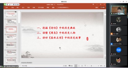 课程开始,夏老师给大家解读了诸多《诗经》当中的名句及其相关的历史典故,并揭示其蕴含的哲理。如《国风·魏风•伐檀》中的“彼君子兮,不素餐兮”、《国风·邶风·柏舟》中的“我心匪石,不可转也。我心匪席,不可卷也”、《国风·齐风·东方未明》中的“东方未明,颠倒衣裳”、《国风•卫风•淇奥》中的“如切如磋,如琢如磨”等。夏老师指出,《诗经》中的这些句子和典故传达着洁身自好、淡泊明志、安贫乐道、尽忠职守等良好的道德情操,通过这些有趣的句子和典故,能够激发儿童阅读经典的兴趣,帮助儿童更好地理解经典中所蕴含的价值观,从而树立自己的价值观,提高自身思想境界。接着,夏老师给大家介绍了《周易》的基础知识,以及宋代学者杨万里的《诚斋易传》一书的特点,该书使用丰富的历史典故来说明《易经》中的事理。夏老师指出,通过书中有趣的历史人物和故事,能让孩子能够更好地把握《易经》中的深刻哲理。