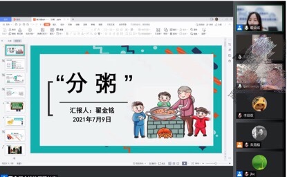 上午九点四十五分,华东师范大学的翟金铭同学给大家带来了今天的第二堂展示课。翟老师将“分粥”事例引入课堂,和同学们就“公平”、“正义”、“分配”等问题进行了深入的探讨。