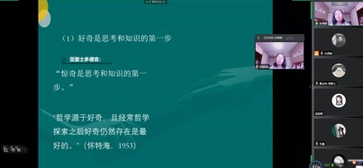 首先,孙老师对科学与哲学的内在关系进行了阐释。孙老师指出,科学和哲学虽然在知识体系方面存在差异,但是二者仍然有诸多相同之处,例如两者都是求知活动、都是对世界的探究、都涉及自我修正的过程、其目标都在于认识事物的内在联系。随后,孙老师谈到了儿童哲学对于科学的价值。孙老师认为,儿童哲学可以培养儿童的关怀性思考、创造新思考、批判性思考、交往沟通和团体合作的能力。这些能力有利于儿童科学素养的提高。最后,孙老师从科学的概念层面,科学的探究或方法层面,科学的态度层面分别说明了科学与儿童哲学的整合渗透。我们在科学的概念层面,可以借助对哲学概念的学习来推进对科学概念的理解;在科学的探究或方法层面,应当构建非良构课堂;在科学的态度层面,可通过儿童哲学的精神及探究共同体的运作来进一步激发学生对万事万物的好奇心和探究兴趣。至此,本场讲座顺利结束。