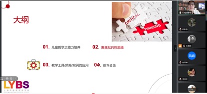 首先,李老师指出儿童哲学注重培养的四项思维能力分别是批判性思维、创新性思维、关爱性思维、合作式思维。对于批判性思维,李老师从大脑的认知水平、批判性思维的词源和含义、思维的结构以及批判性思维的六大核心技能等多方面进行了分析,指出批判性思维的过程就是从延缓判断达到最佳判断的一个过程。接着,李老师介绍了“反思工具—Tag”和“NEWS方向盘反思工具”等多种批判性思维工具,并概括了学生的批判性思维的具体表现,详细讲解了培养批判性思维的两种主要路径,即隐性路径和显性路径。随后,李老师讲述了思维游戏和数学游戏等培养儿童批判性思维的具体案例,分享了关于将儿童哲学与国学相结合的经验,并给大家介绍了与儿童哲学批判性思维相关的研究和文献资料。