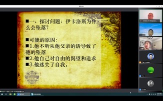 7月10日上午九点四十五分,第二堂展示课是由任平学员给大家带来的《古希腊神话中伊卡洛斯的坠落中反思和隐喻》。在简短的自我介绍后,任平学员以一个小视频为导入,引起小朋友的注意力。随后,任平学员邀请参与课堂的小朋友阅读伊卡洛斯的神话故事。他在小朋友读完神话故事后,引导小朋友分别对“伊卡洛斯为什么会坠落”“听父母话是不是正确的、有意义的”“如何判断听不听话是正确的?是根据结果还是动机?”“历史生活中有没有伊卡洛斯这样的人?你认为这种人伟大还是悲惨?”等多个问题进行了思考与讨论。这个过程中,参与课堂的小朋友能够做到积极思考并主动回答问题。最后,任平学员对课堂进行了总结。