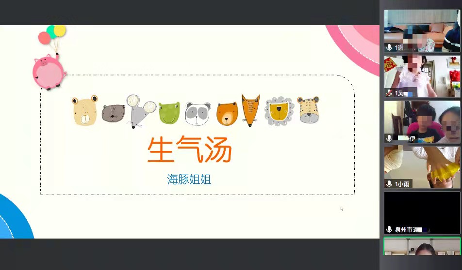 参加了两期厦门大学举办的儿童哲学暑期学校,真的非常感谢厦门大学的老师们为我们提供了这么好的学习平台,从理论到实践,再到老师们的精彩点评,特别感谢郑辉荣老师和林玉玲同学,非常细心地准备、组织这次线上活动。作为幼儿园一线工作者,能够这么近距离的聆听和学习儿童哲学,受益匪浅。让我明白了儿童哲学的刺激物可以怎样选择,以及儿哲的教学组织形式、教学内容、小朋友互动要如何更加有效的展开。对厦门大学曹教授和陈教授印象深刻,在学员开完展示课后,都会特别细致的进行点评。同时也非常感谢厦门大学给予泉州市直机关金山幼儿园大一班谢云朵、吴昕洁、黄镜霖、连昱程、施姝伊、林子均、陈诗扬、苏思妤小朋友们的学习机会,让小朋友们通过参与线上腾讯会议的形式,亲身感受和体验儿童哲学活动。