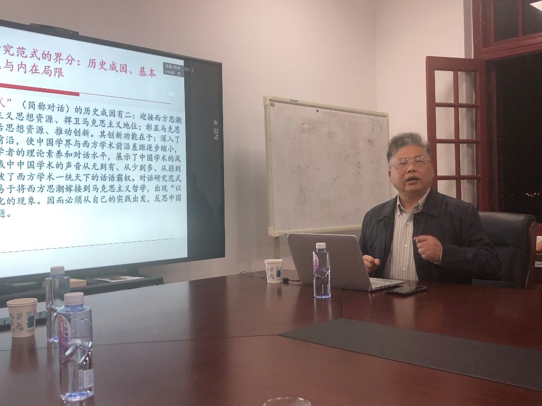 讲座伊始,任平教授从语义上梳理了“中国马克思主义”的基本内涵,并追问了“中国马克思主义”出场的可能性。任平教授指出,“中国马克思主义哲学”不同于“马克思主义哲学中国化”。“中国马克思主义哲学”是从“世界走向中国”到“中国走向世界”这一时代大转换的产物,是“中国走向世界”的时代背景下,中国学术走向世界的一面旗帜。我们今天不仅仅马克思主义哲学的学徒,还要成为马克思主义哲学的续作者。因此,反思“中国马克思主义哲学”何以可能出场,研究“中国马克思主义哲学”的当代出场路径,具有重要意义。