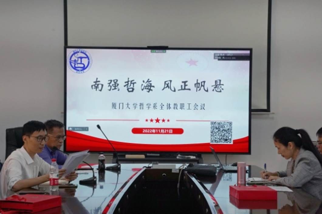11月21日下午,哲学系全体教职工会议在南光楼320会议室召开,这是哲学系成为学校直属的教学科研单位后召开的第一次全体教职工会议。会议由哲学系党委书记杨松主持,系主任朱菁、党委副书记杨机像、副主任林育川出席会议,哲学系全体教职工与会。