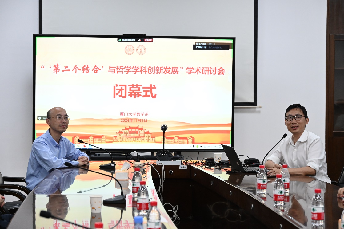 闭幕式由厦门大学哲学系副主任郑伟平教授主持。厦门大学哲学系党委书记杨松教授致辞并作大会总结,他向与会专家学者为大会贡献的智慧表示衷心感谢。他认为,本次研讨会为不同学科、不同年龄的学者提供了交流的平台,我们借此不仅领略了老一辈学者的风采,也看到了一批中青年学者、优秀研究生在学术上的独到见解,感受到哲学学科不断创新发展的强劲动力。他期待厦大哲学系的师生与学界专家学者一起继续推进“第二个结合”的研究,为中国的哲学学科发展做出新的贡献。