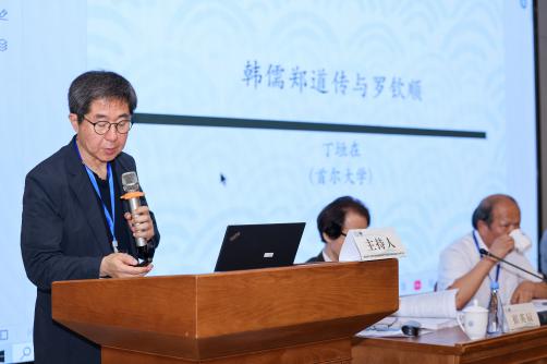 韩国首尔大学哲学系丁垣在教授报告了《韩儒郑道传与罗钦顺》,认为郑、罗二人都以朱熹的哲学为出发点,同时又都脱离了朱熹哲学的范围。