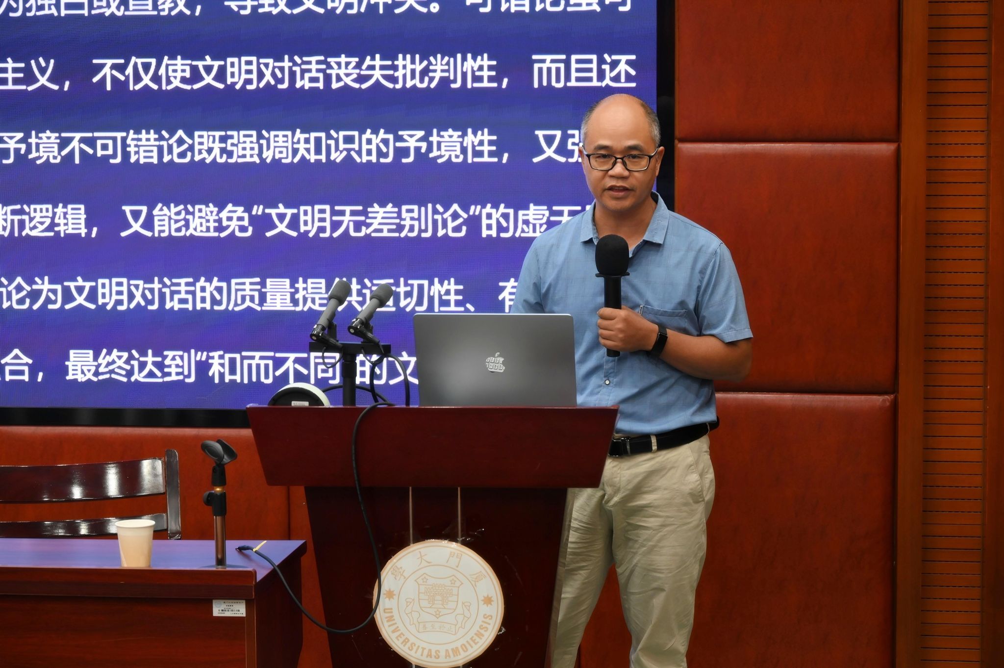 曹剑波教授以《深层文明对话的知识论出路》为题发表了极具现实关怀的演讲。报告直面全球化时代“表层共识”与“深层隔阂”并存的困境,并从知识论的层面进行探源。曹剑波教授指出,“绝对不可错论”导致文明冲突,“可错论”又滑向价值虚无的相对主义,两者都无法为真正的文明对话提供出路。为此,他构建了“予境不可错论”作为解决方案。该理论既承认各种文明在其特定历史与实践“予境”中的内在合理性与不可错性,又强调“予境”的动态性、开放性与不平等性,从而打破了“文明优劣论”的独断和“文明无差别论”的虚无,为实现“和而不同”的文明共生局面提供了坚实的知识论根基。