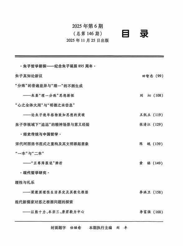 《中国哲学史》2025年第6期刊登我系王凯立助理教授文章——《“心之全体大用”与“明德之未尝息”——论朱子晚年格物致知思想的突破》。