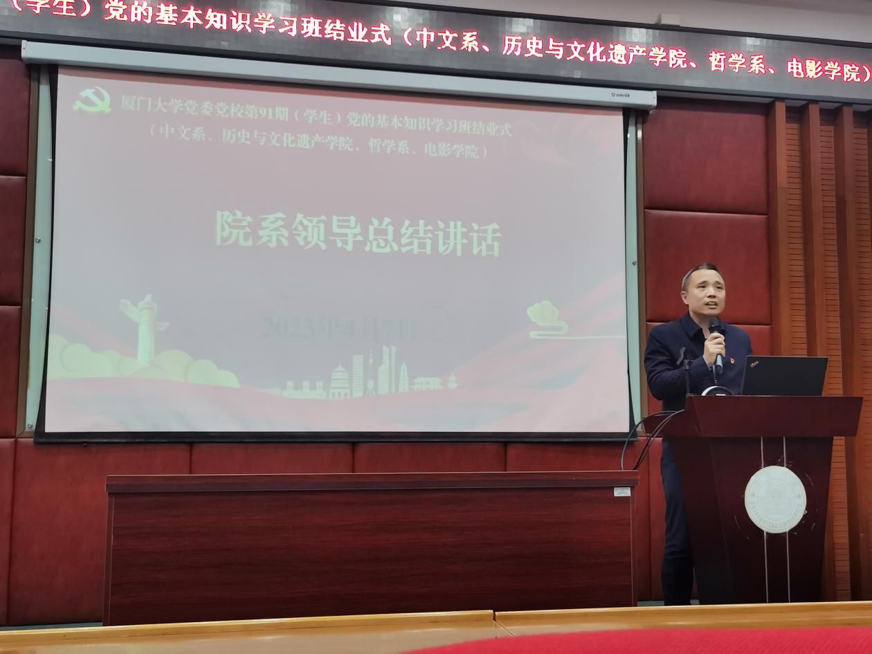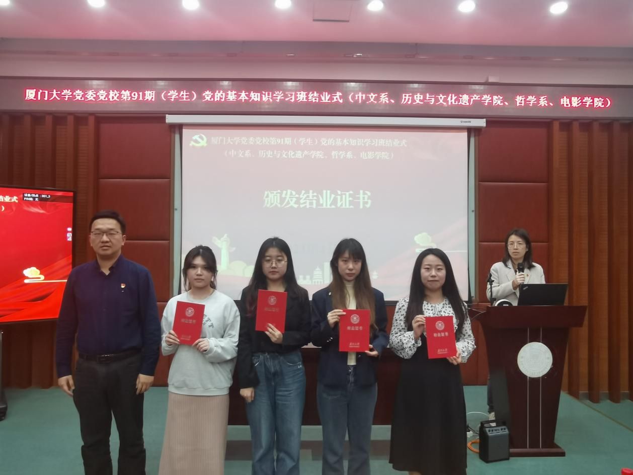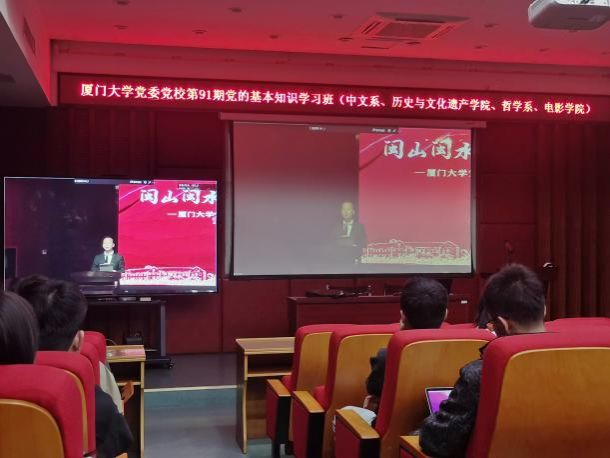 由厦门大学中国语言文学系、历史与文化遗产学院、哲学系、电影学院联合承办的厦门大学党委党校第91期党的基本知识学习班于3月25日至4月7日顺利举办,66名学员经过7场专题党课学习、2次小组讨论提升和在线考试测评,圆满完成学习任务并顺利结业。
