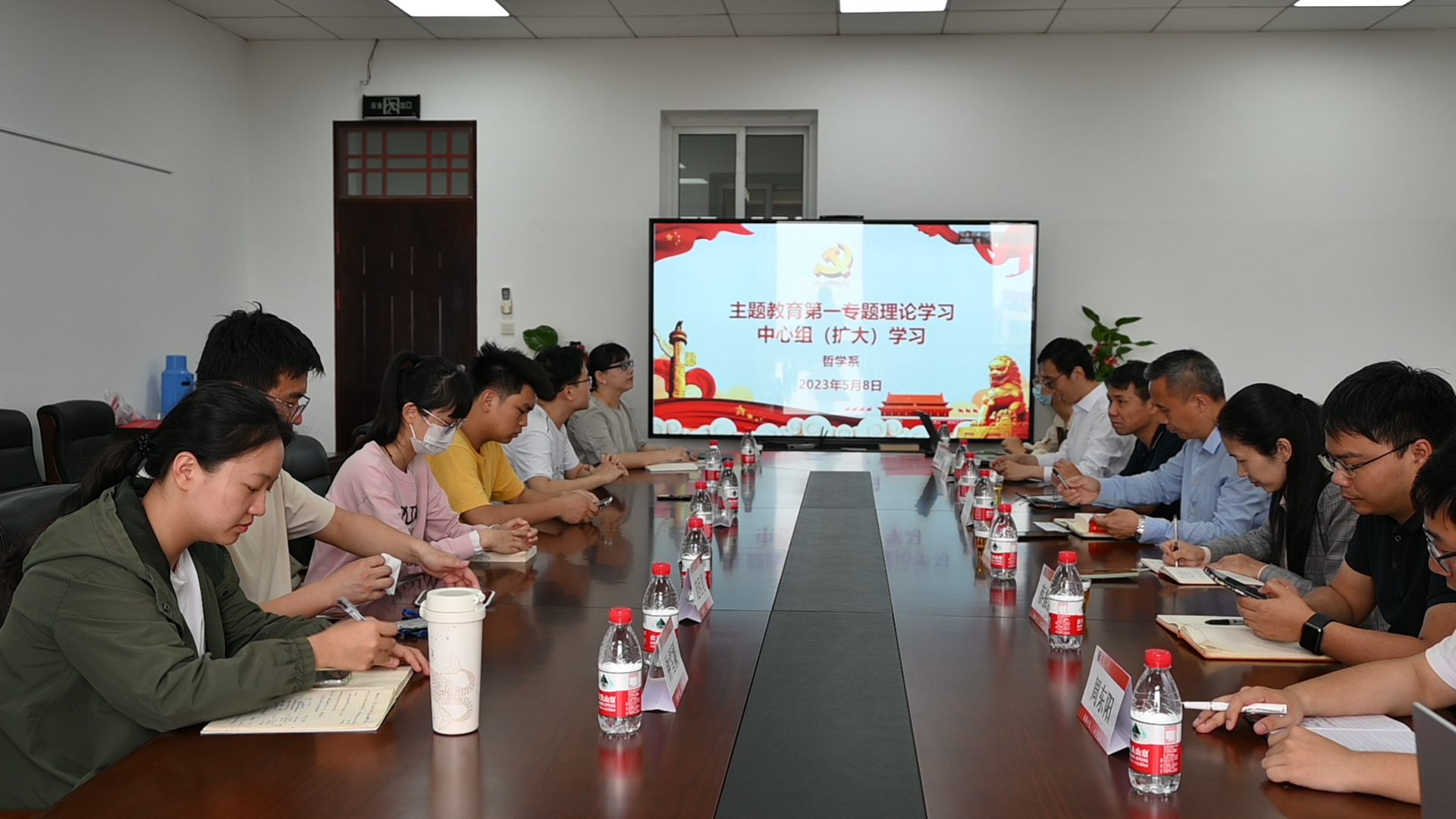 5月8日上午,哲学系组织召开主题教育专题理论学习中心组(扩大)学习,学习围绕学习贯彻习近平新时代中国特色社会主义思想主题教育工作会议上的重要讲话、党的二十大报告、新党章和2023年政府工作报告等内容展开。学校第三巡回指导组组长蔡郑伟到会指导,哲学系全体党员领导干部和各党支部委员参会。