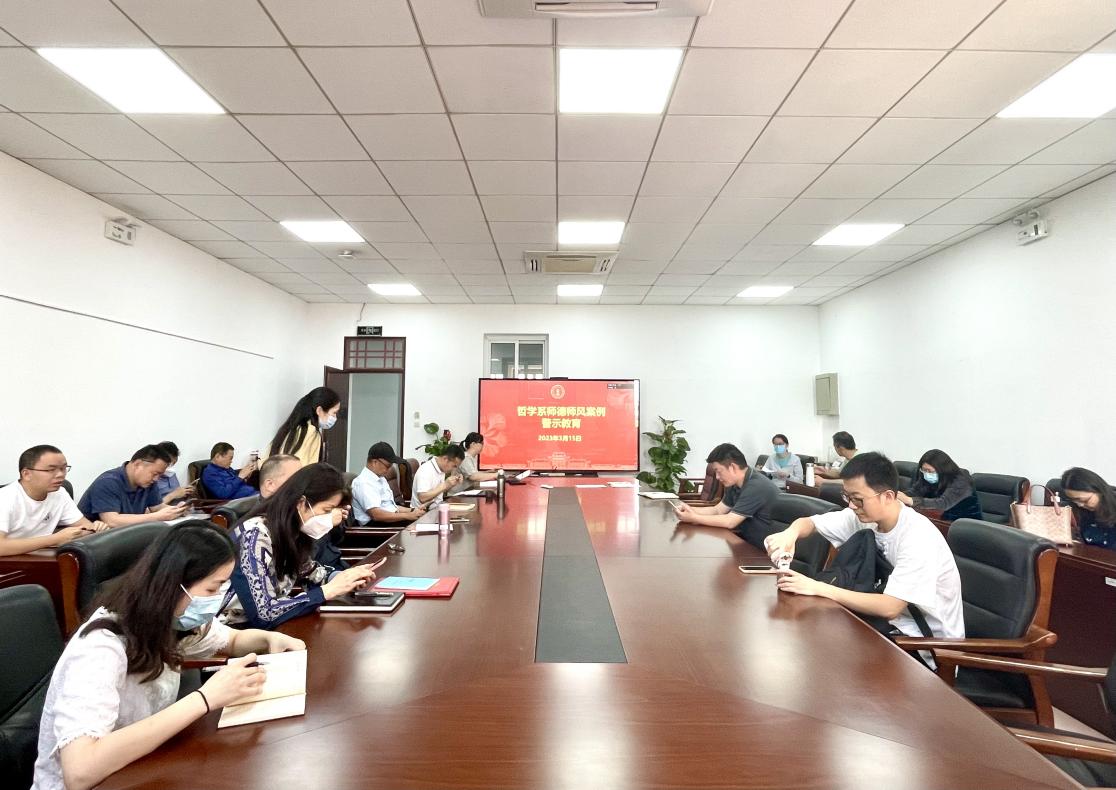 会上进行了师德师风案例警示教育。杨松向与会人员传达了教育部近期通报的师德师风违规案例,强调全系教职工要树立正确的人生观、价值观,培养崇高的职业理想和高尚的道德境界,做到牢记责任、不辱使命、爱岗敬业,切实担当起为党育人、为国育才的光荣使命。