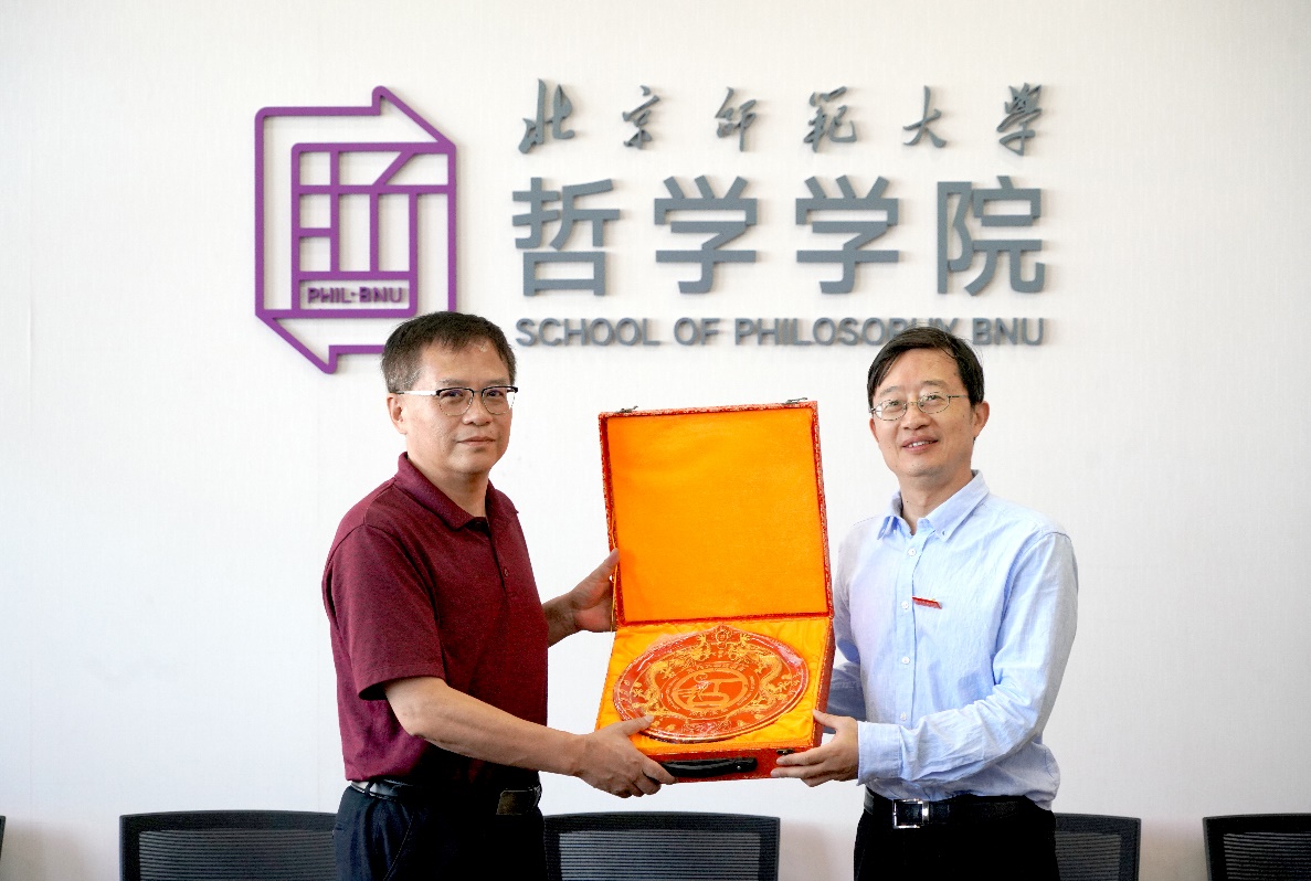 北京师范大学哲学学院是我国哲学社会科学教育、科研的重镇之一,拥有悠久的办学历史,百年来涌现出著名马克思主义哲学家李达、中国哲学家张岱年、原教育部部长袁贵仁、“时代楷模”黄文秀等一大批杰出校友,充分发挥了示范引领作用。我系领导班子一行于6月21日抵达北京师范大学哲学学院,受到热情接待。