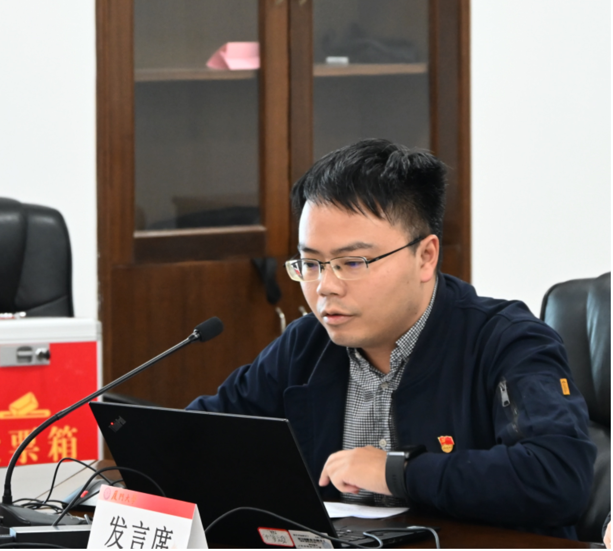 厦门大学党建联络员蔡郑伟、校党委组织员兼党建办副主任陈秋虹、教师工作部副部长杨建中、学生工作部副部长刘俊英莅临指导,哲学系党委书记杨松、副主任林育川、副主任郑伟平、各党支部书记和党员代表参加本次会议。会议由党委副书记王晓萌主持。