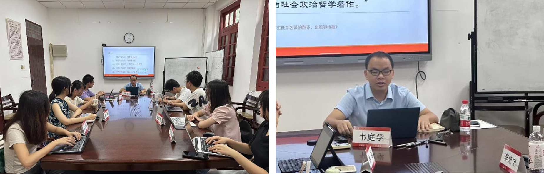 9月22日下午,厦门大学哲学系“马克思主义与中华优秀传统文化研修班”于南光一214教室开展第五次授课活动,哲学系助理教授韦庭学老师为同学们带来了《共产党宣言》的导读。系团委书记蔡振磊老师、辅导员林晋扬老师出席了本次授课。