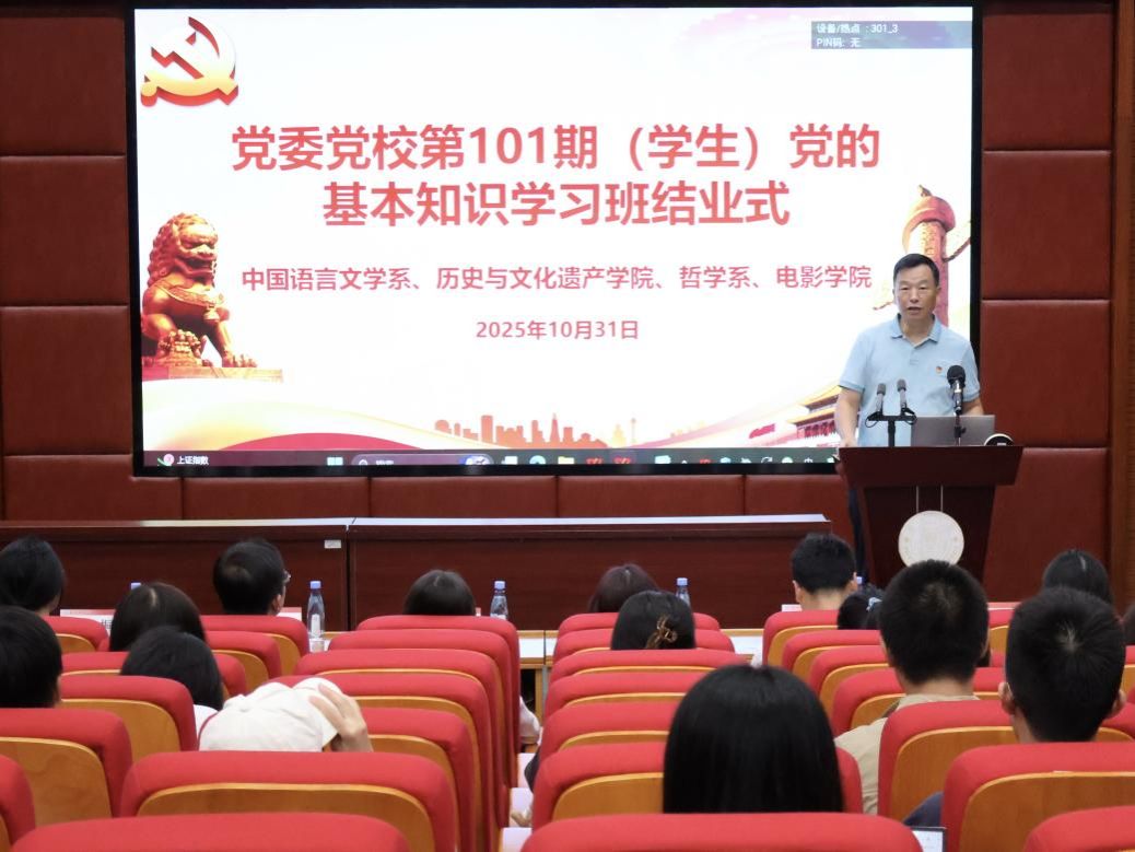 10月18日至10月31日,由中国语言文学系、历史与文化遗产学院、哲学系、电影学院联合承办的厦门大学党委党校第101期(学生)党的基本知识学习班顺利举办。54名学员经过9场专题党课学习、2次小组讨论提升和在线考试测评,圆满完成学习任务并顺利结业。