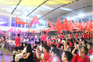 目光所至为华夏,五星闪耀为信仰。高举红旗,欢呼雀跃,哲学系同学们的歌声透出炽热和深沉。本次活动增强了同学们的集体凝聚力和合作意识,同学们以歌咏志,用激扬的演唱和精彩的表演,表达了对党和祖国的深厚情感。勇毅前进,奋进一流。我们学习新思想,担当新时代使命,以中国自信共同迈向梦想征程。
