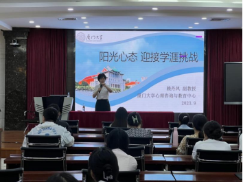新学期的开始意味着踏入了一个新的人生阶段,在接触新鲜事物的同时更需要认识新的自己,以积极阳光的心态来迎接新的生活。心理咨询与教育中心赖丹凤副教授用幽默风趣的讲授形式为同学们开展了一场以“阳光心态 迎接学涯挑战”为主题的心理健康教育,让同学们认识到压力来源于自主感、胜任感和归属感的缺失,指导同学们要直面压力的源头并及时寻求专业的心理咨询的帮助,助力同学们以健康的心理状态迎接新的挑战。