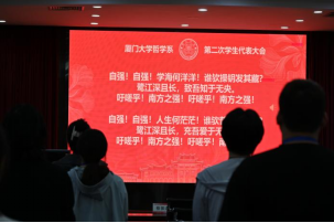 厦门大学哲学系第二次学生代表大会于2023年10月29日下午3:00在联兴楼多功能厅顺利举行。哲学系党委副书记王晓萌、哲学系团委书记蔡振磊、各兄弟院系嘉宾、学生会主席团成员及哲学系各班学生代表共同参加了本次会议。