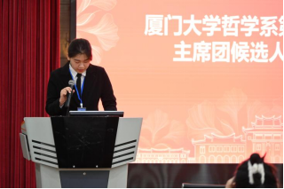 其后,厦门大学哲学系第一届学生会执行主席黄榆茜代表主席团成员进行述职报告。她认真回顾和梳理了过去一年的工作,客观反思和总结了工作中遇到的问题,最后明确和展望了哲学系学生会未来发展的思路和方向。