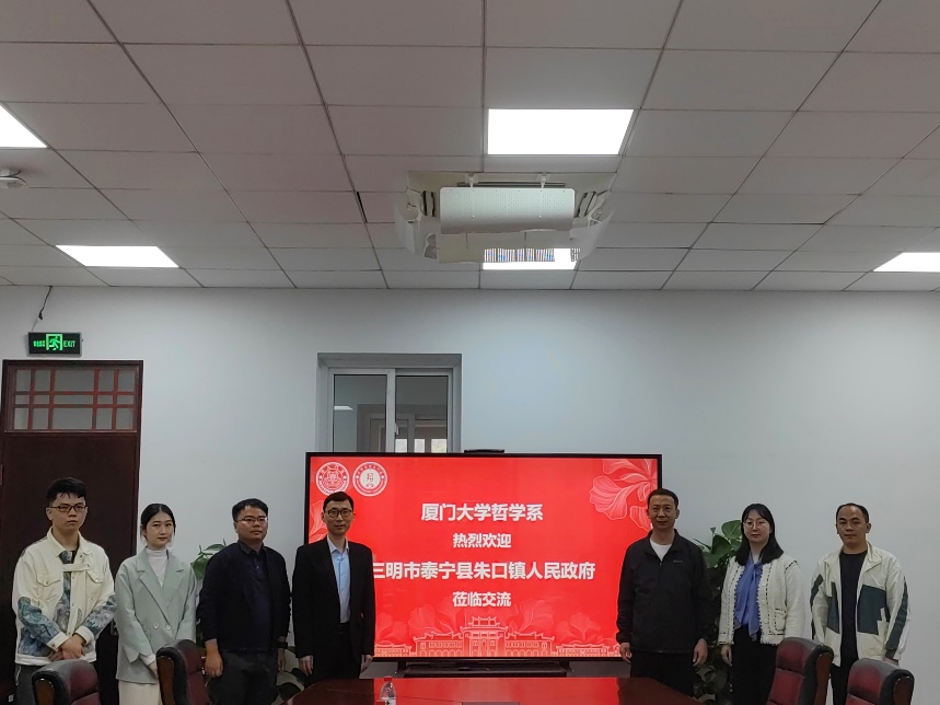 2024年4月9日下午,三明市泰宁县朱口镇人大主席肖剑锋、科技副镇长何一言、旅游口干事肖九隆一行莅临我系交流,哲学系党委书记杨松、团委书记蔡振磊、教学秘书肖覃文、储备辅导员林晋扬会见来宾。
