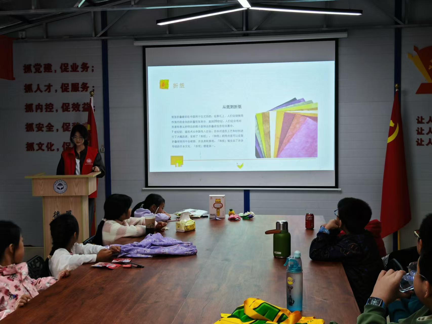 小学到初中年龄阶段的小朋友们非常活泼好动,但是在跟随电脑视频折纸时,也能短暂地静下心来投入到这个过程之中。在协助帮助董驰解决孩子们折纸过程中的困惑与难题时,他们的创造力与想象力让我惊叹不已,小朋友们对世界的认知是简单的,因此他们对待一件普通的事情会有着额外的认真与执着。这次志愿活动让我更加深刻地体会到了教育的意义与价值。它不仅仅在于传授知识,更在于培养孩子们的创造力、想象力以及对待生活的态度。我希望未来能有更多的机会参与到这样的活动中来,与孩子们一起成长、一起进步。这次折纸课助教经历将成为我研一生活中一段美好的回忆,它让我感受到了帮助他人的快乐与满足,也让我更加坚定了投身志愿服务的决心。
