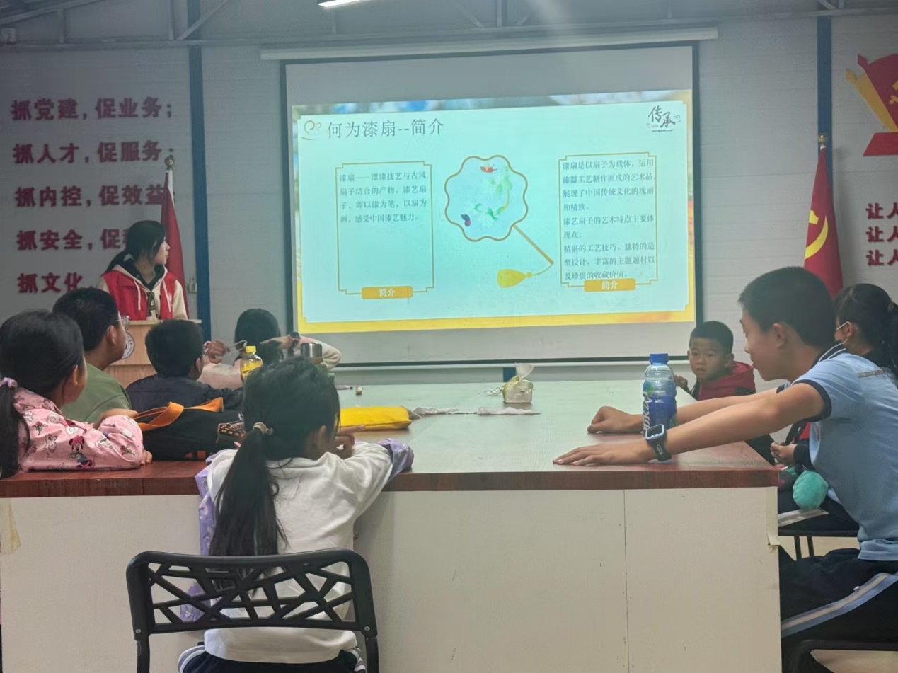 杜嘉璐(主讲志愿者):作为小课堂的主讲志愿者,我深感荣幸能为小朋友们讲解非遗漆扇,并且非常开心能与小朋友们共度这段宝贵时光。看到小朋友们眼中的好奇与兴奋,我更加坚信传承中华优秀传统文化的重要性。通过有趣的讲解和互动游戏,不仅让小朋友们了解了漆扇的精湛工艺,更在欢声笑语中增进了彼此的感情。简而言之,今天的小课堂让更多的小朋友感受到了非遗漆扇的魅力,了解漆扇,爱上漆扇,更好地为守护宝贵的优秀非遗文化服务。