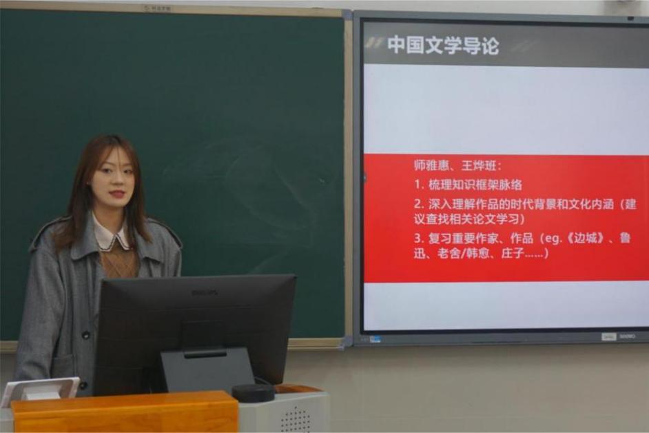 随后,2023级中文系本科生汤语晨同学分享了中国文学导论、中国近代史纲要、中华民族共同体概论三门课的备考经验,就考试题型与复习内容做了详细介绍。