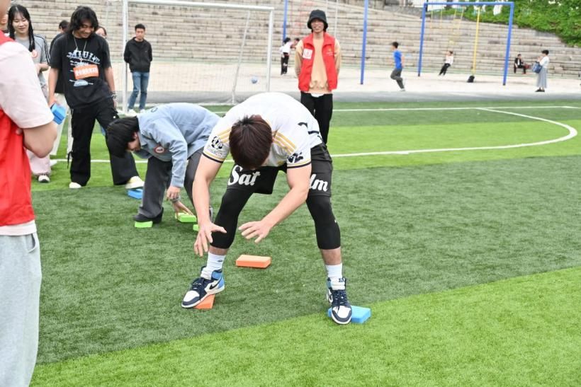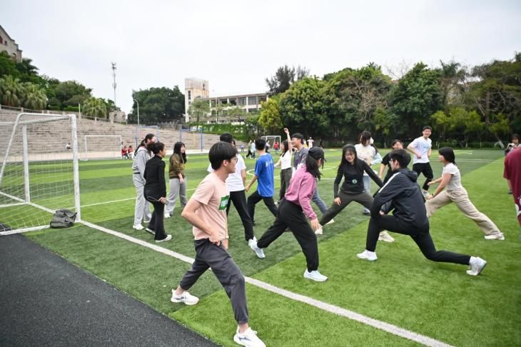 在激昂的音乐声中,选手们以饱满的热情投入到赛前热身。他们或舒展筋骨,或跳跃拉伸,每一个动作都充满力量与韵律,为接下来的比赛做好充分准备,现场氛围瞬间被点燃。