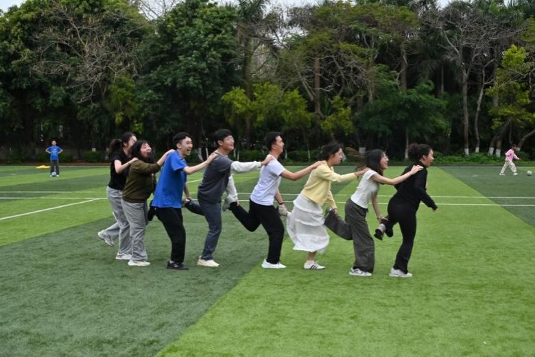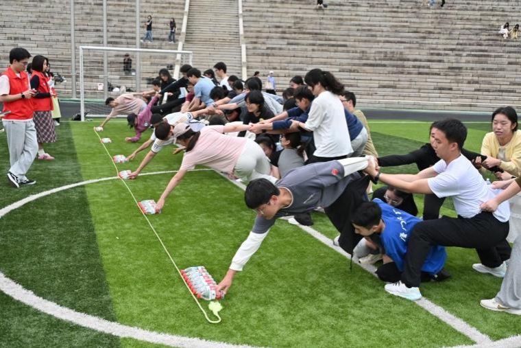 在“链接加速”项目中,选手们两两一组,用身体连接成“链条”,共同向前冲刺。他们默契配合,步调一致,勇往直前,这场比赛考验选手们的速度,更强调了团队默契。