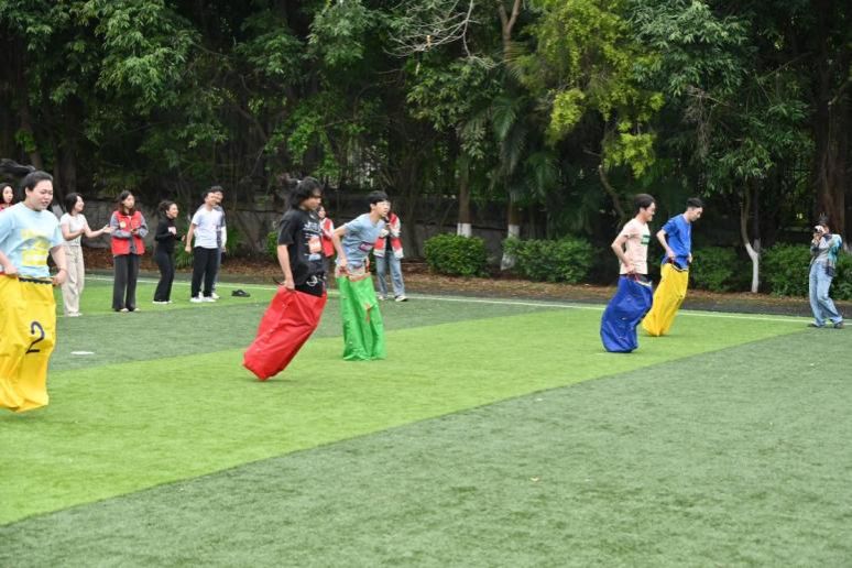 身着袋鼠服的选手们化身“运动健将”,在赛道上展开了一场体力与毅力的较量。他们蹦跳前行,尽管步伐踉跄、呼吸渐促,但眼神坚定如初,每一次奋力跃起都饱含对团队的承诺。这场比赛,是体力与意志的双重考验,更是团队协作精神的生动诠释——当个人力量融入集体,每个人都能迸发出惊人的能量。