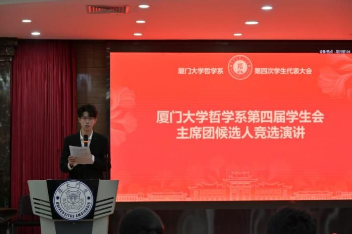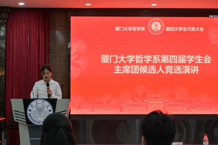 11月1日上午,厦门大学哲学系第四次学生代表大会在联兴楼104会议室顺利举行。哲学系党委副书记王晓萌、系团委书记蔡振磊,校学生会主席团成员,各兄弟院系嘉宾出席开幕式,哲学系学生会主席团成员及各班学生代表全程参加此次会议。
