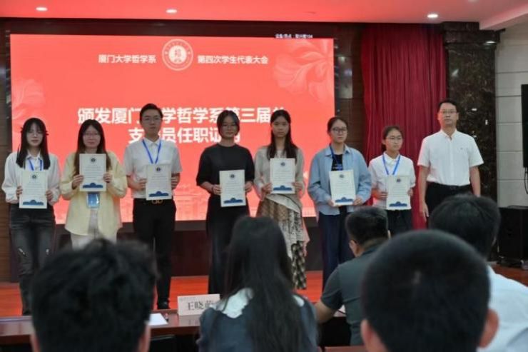 厦门大学哲学系第四次学生代表大会的胜利闭幕,不仅标志着哲学系学生会工作开启了全新篇章,更在全系学子中凝聚起团结奋进共识。哲学系第四届学生会将团结带领广大青年同学始终紧跟党的步伐,将个人成长融入国家发展大局,在学业深耕中锤炼本领,在服务实践中勇担责任,以昂扬姿态投身时代浪潮,让青春在实现中华民族伟大复兴的中国梦的征程中绽放光彩!